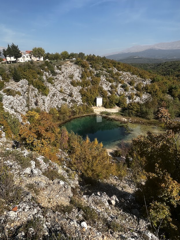 Blizu meje z Bosno in Hercegovino leži eden od treh izvirov reke Cetine — Veliko Vrilo ali Glavaš. Najlepši razgled nanj se odpre z vrha ceste ob cerkvici, od koder ta turkizno-zeleni izvir deluje kot oko narave. Z dronom posnet prizor razkrije prav neverjetne odtenke modre in zelene, ki v jesenskem času, ob barvitih drevesih, zasijejo še posebej čarobno. Ta naravni dragulj sredi mirne, skoraj neposeljene pokrajine, vabi k kratkemu postanku — le nekaj korakov po stopnicah navzdol in že stojiš ob robu skrivnostnega brezna, globokega več kot 100 metrov. Žal pa je ta izvir znan tudi po tragičnem dogodku — v njem je med potopom umrl slovenski potapljač, ki je raziskoval njegovo globino. Več v članki RTV SLO: https://www.rtvslo.si/crna-kronika/iskanje-slovenskega-potapljaca-zaustavljeno/207377.
