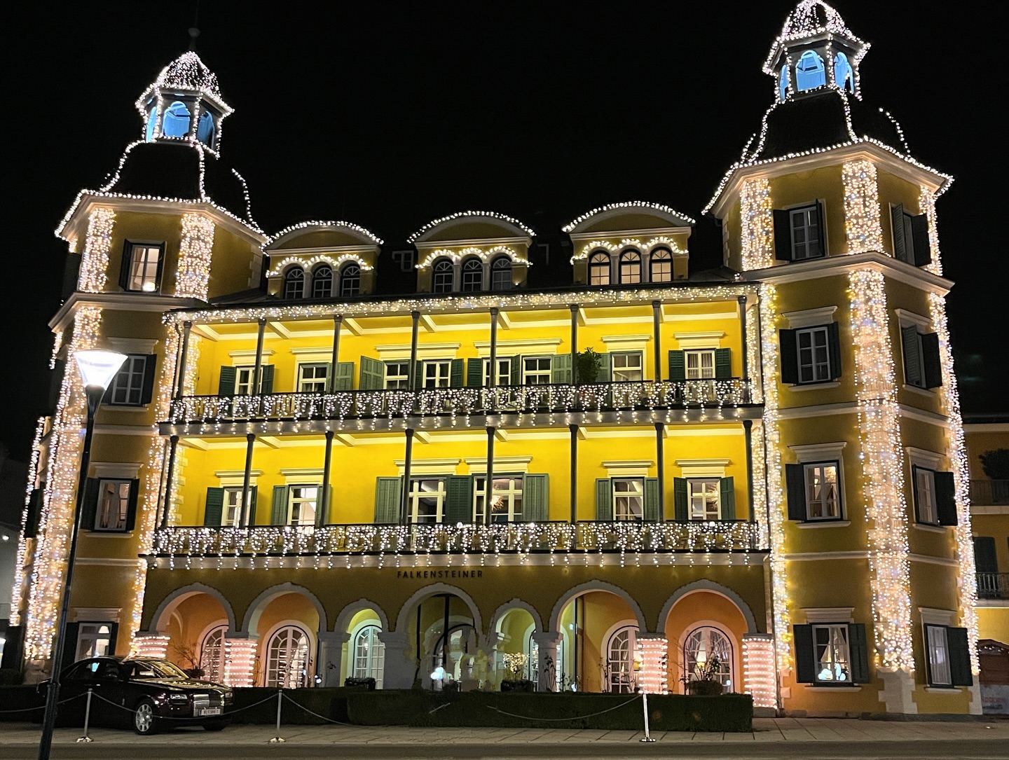 Poseben praznični čar doda tudi bogato osvetljen luksuzni hotel Schloss Velden, ki ponoči še dodatno zasije. Od tam naprej je panorama mesta prava fotogenična pravljica, ki ti vzame sapo – ne glede na to, ali si tukaj zaradi praznikov ali zgolj zaradi miru ob jezeru. Po naključju sva parkirala pri Sud Berger Parkplatz in ravno tu se ponuja najlepši pogled na osvetljeno mestece.